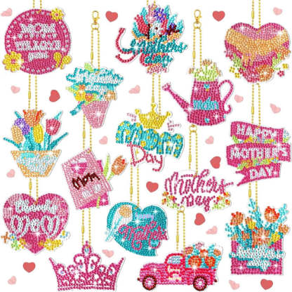 This keychain set includes 15 different designs, each crafted to celebrate Mother’s Day with intricate patterns and vibrant colors. The shimmering rhinestones add an elegant sparkle, making each keychain a standout piece. These accessories can be attached to keys, bags, or used as decorative charms for a personalized touch.