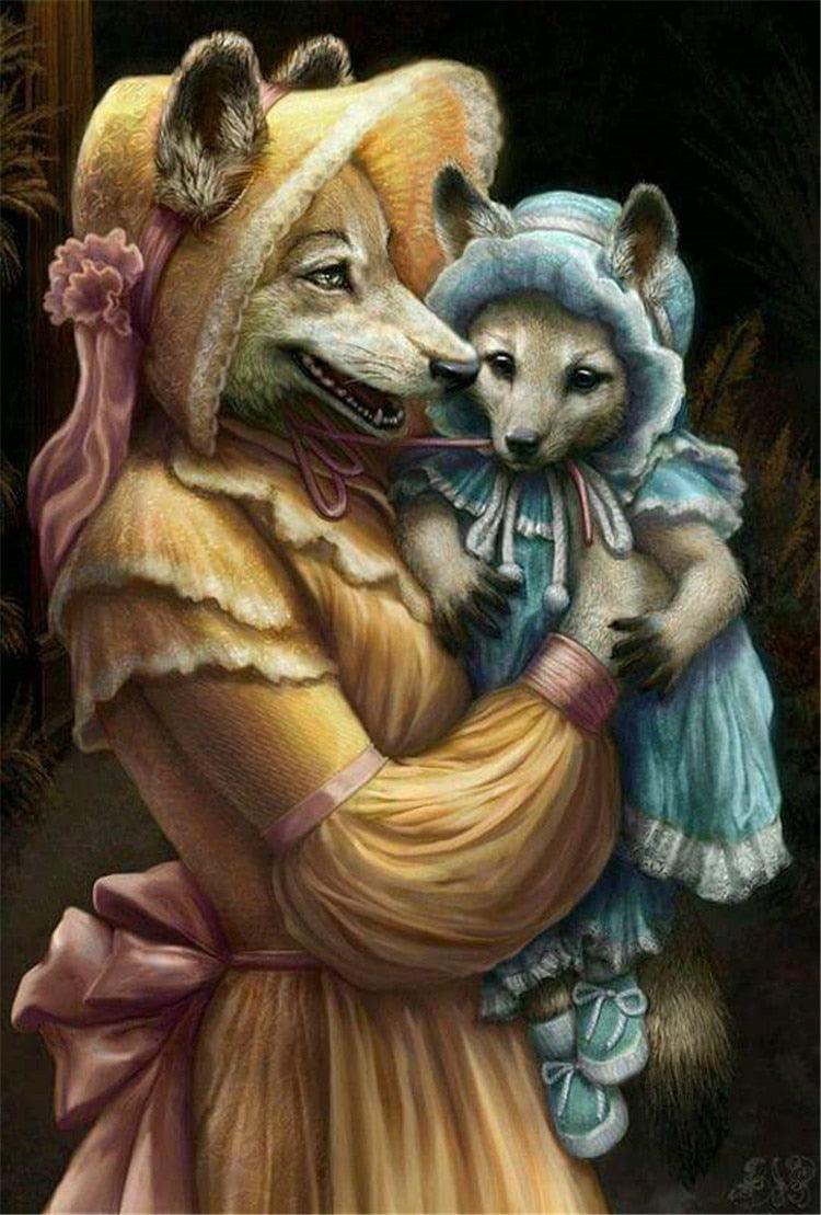 Mommy And Baby Fox 5D DIY Paint By Diamond Kit