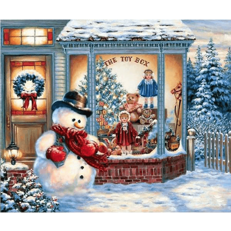 Christmas Toy Shop & Snowman 5D DIY Paint By Diamond Kit