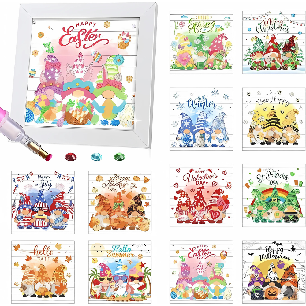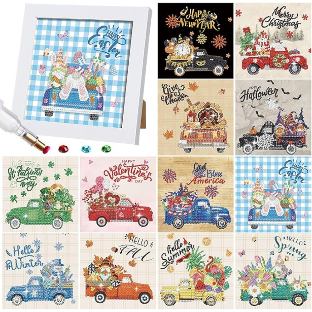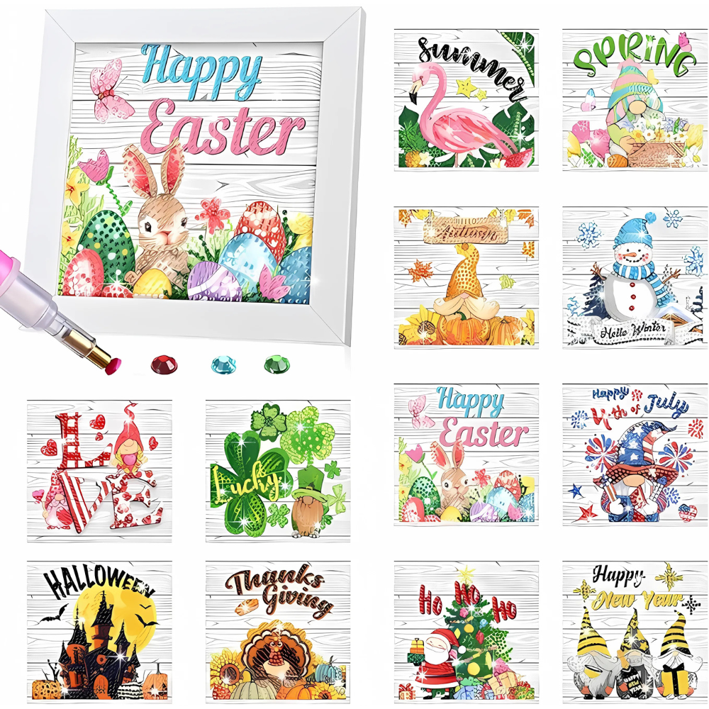 Celebrate Every Season with the 13 Pieces Seasonal Diamond Art Kit with Framed Holiday Designs