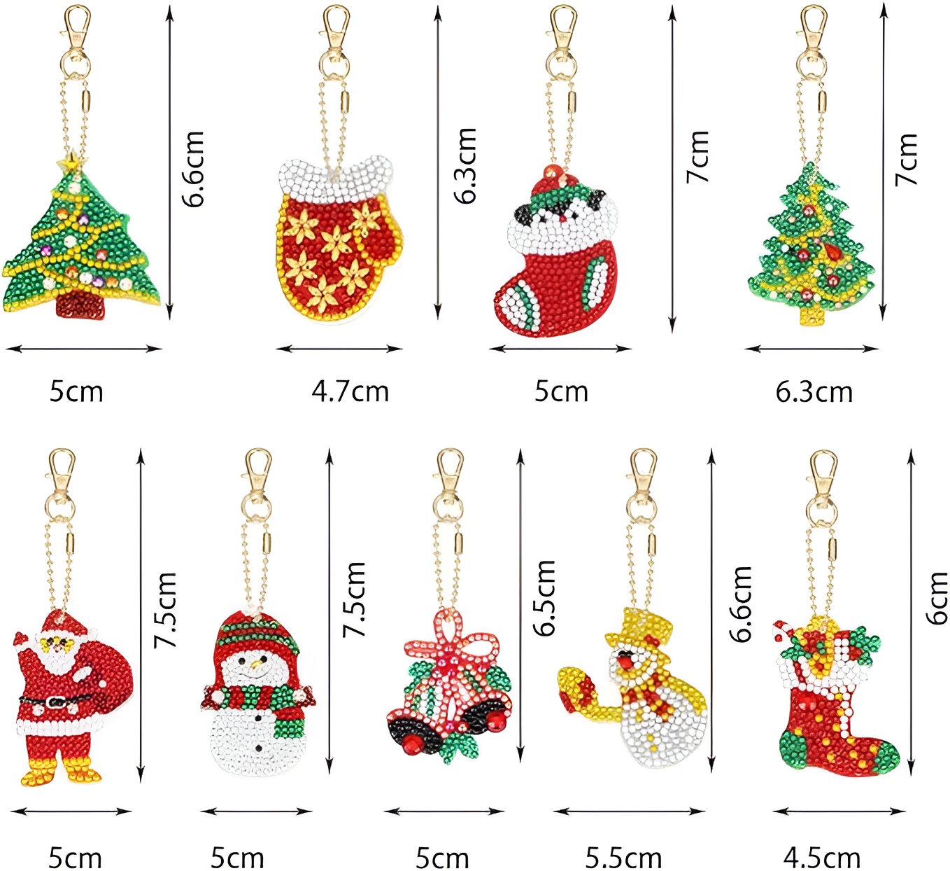 The 17 Piece Christmas Diamond Painting Keychain Kit is also ideal for gifting or using as party favors during the holiday season. Whether you're crafting alone, with friends, or with family, you'll enjoy the creative process and the sense of accomplishment that comes with completing your DIY diamond art project.