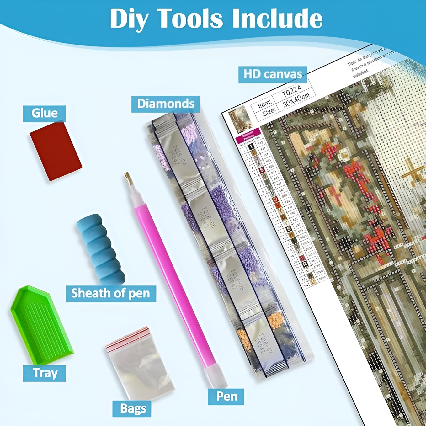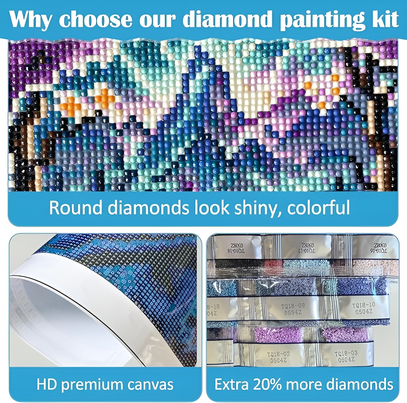 - Washing: The canvas itself is not washable, so avoid getting it wet. Keep it in a dry place to preserve the quality of the diamonds and the image.