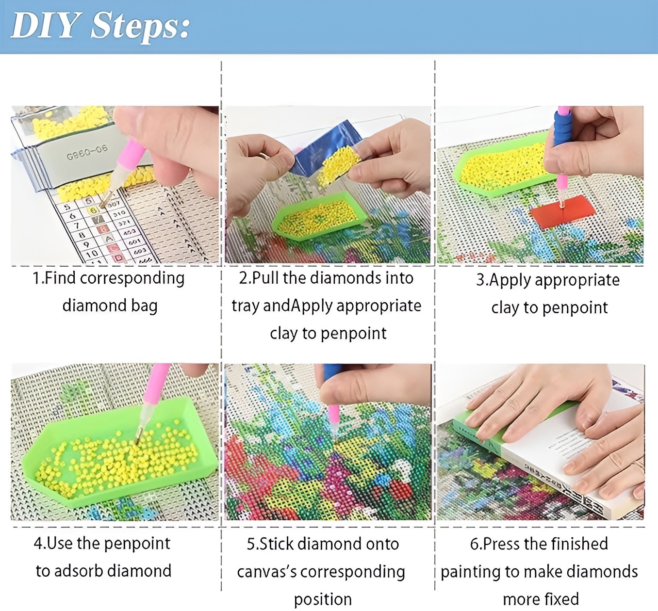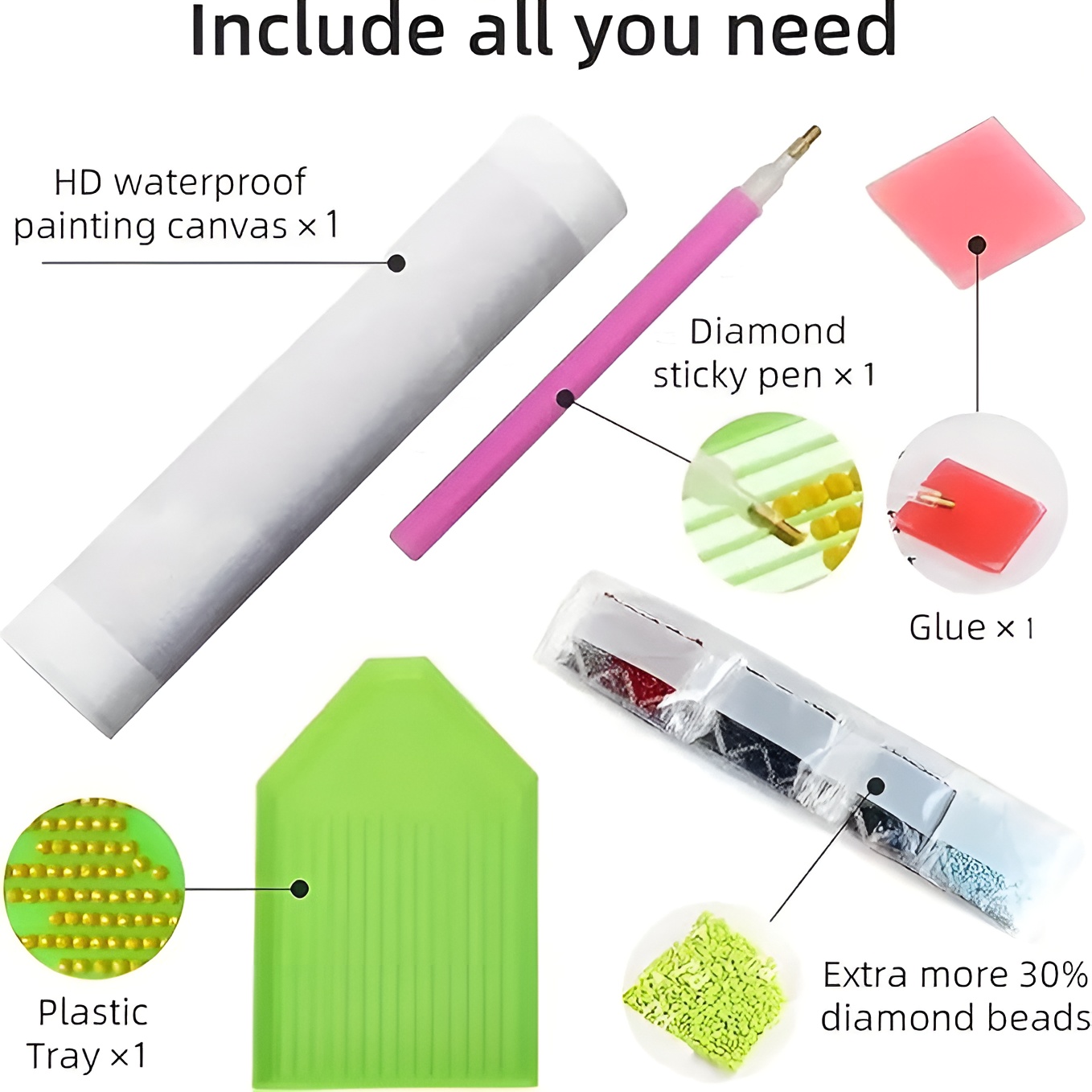 - Enough colored round diamonds for the project (with 30% extra diamonds)