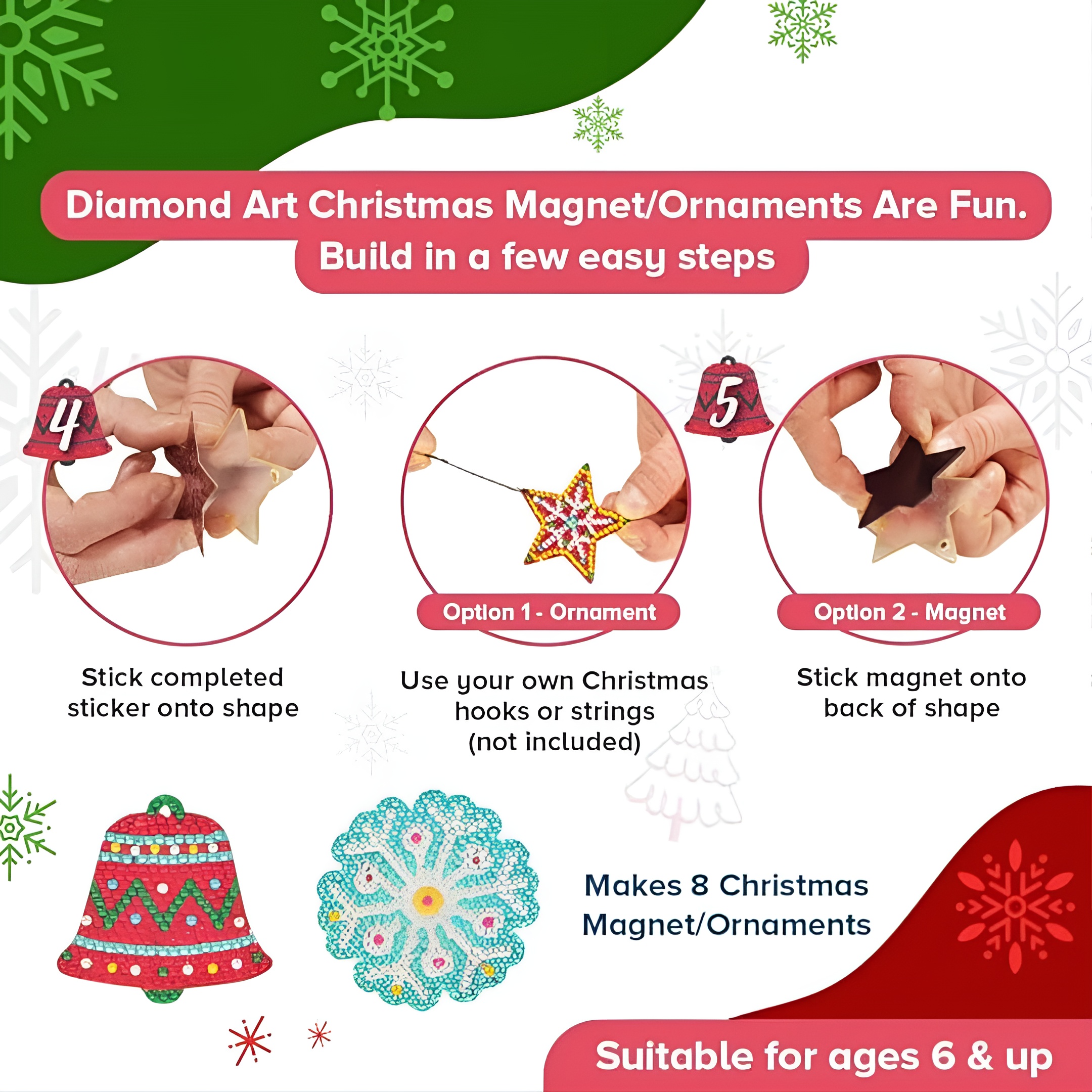 - Versatile Crafting Options: Once the ornaments are complete, children can use them as magnets on the refrigerator or hang them on the Christmas tree. The magnets are included in the kit, but if you prefer, you can add your own hooks and strings for hanging. This gives kids the option to display their creations in various ways.