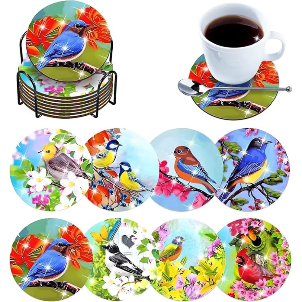 8 Pieces Diamond Art Coaster Set with Animal-Inspired Designs