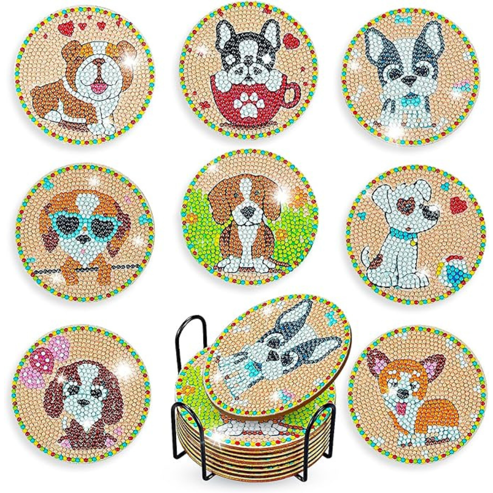 This coaster set offers a fun, hands-on crafting experience while providing stylish, coasters to protect your surfaces. The animal-themed patterns and sparkling rhinestones make these coasters a charming addition to any space. Complete with all necessary tools and a metal storage stand, this kit is easy to assemble and perfect for crafters of all levels.