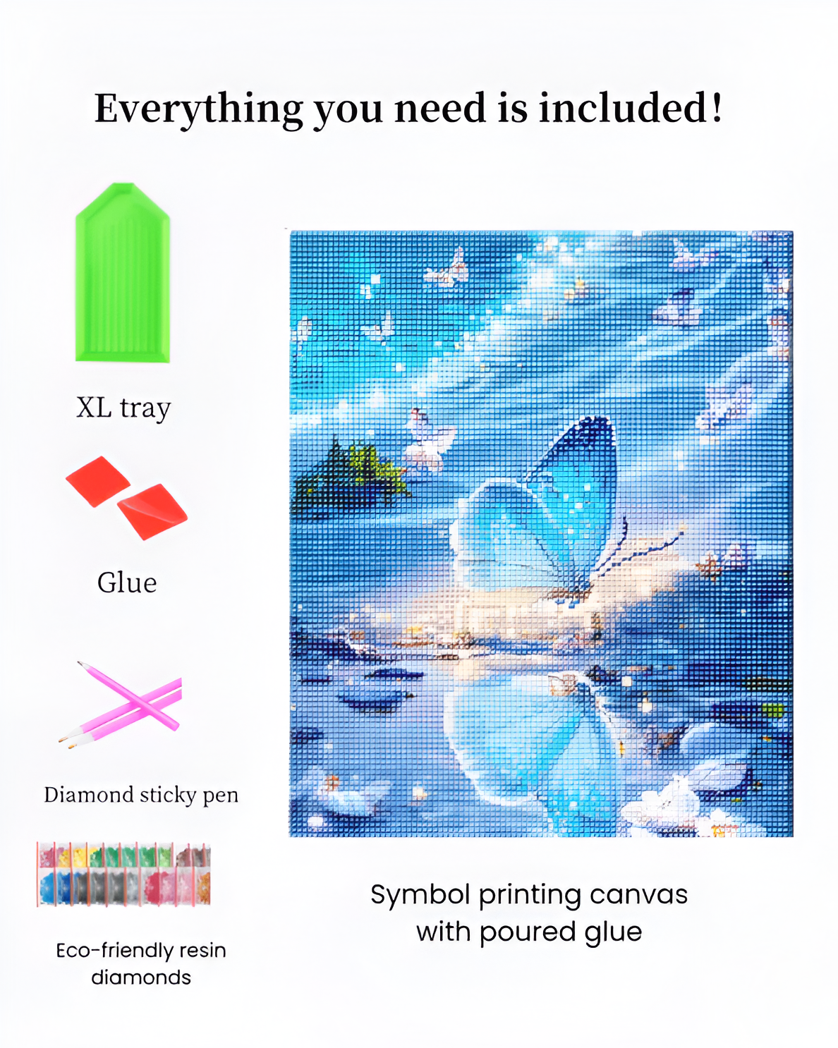 Butterfly Themed Diamond Painting Full Drill Art Kit remains a popular choice due to its symbolic association with transformation and movement. This Blue Butterfly diamond painting translates that theme into a structured crafting experience that is both calming and visually engaging. Each section of the canvas reveals subtle lighting details that enhance the sense of depth as the image comes together.