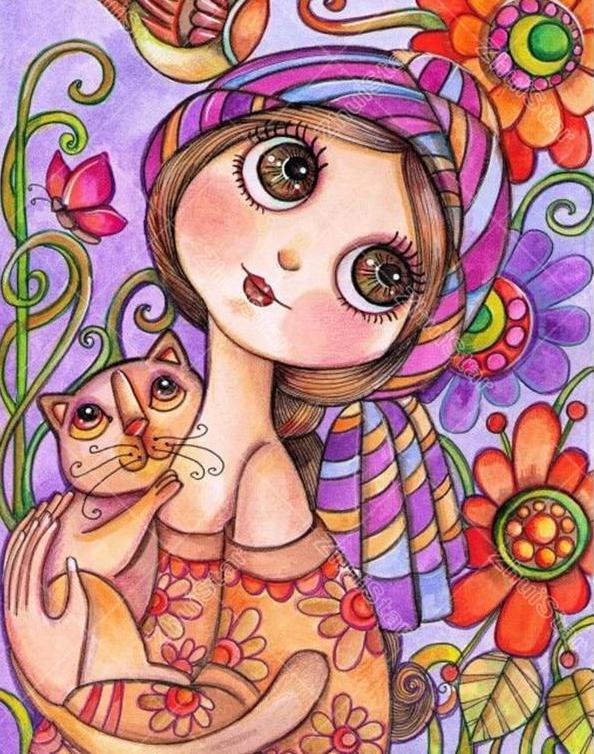 Cartoon Cat & Girl 5D DIY Paint By Diamond Kit