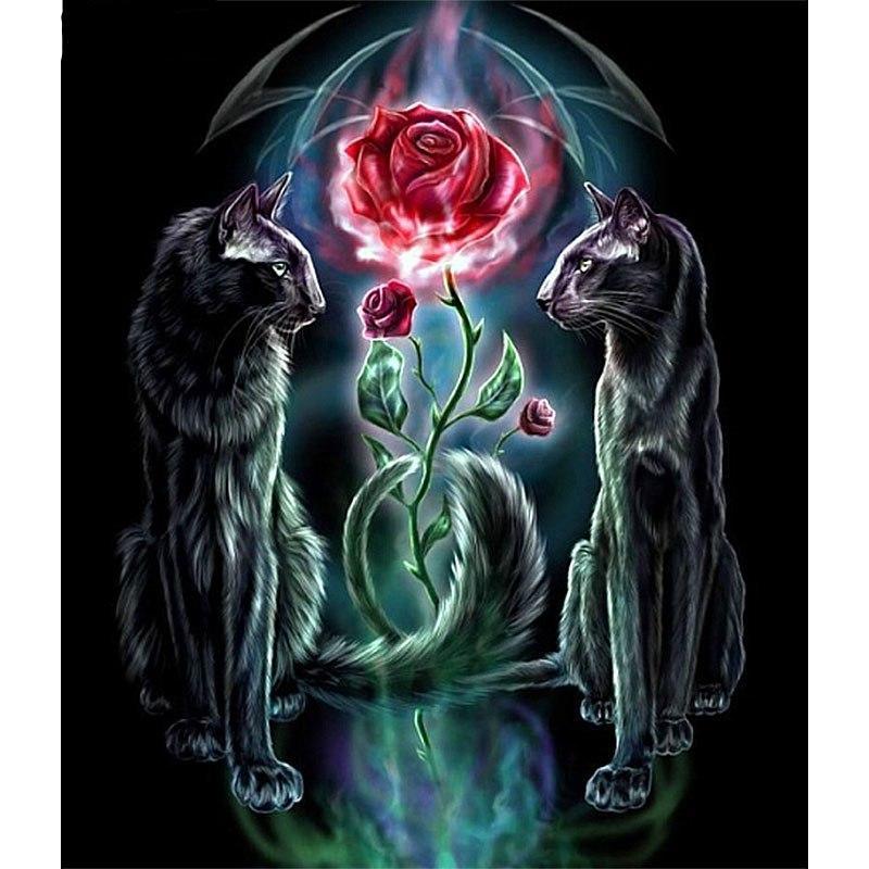 Cartoon cat & rose 5D DIY Paint By Diamond Kit
