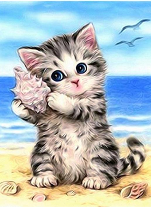 Cartoon Grey Kitten 5D DIY Paint By Diamond Kit