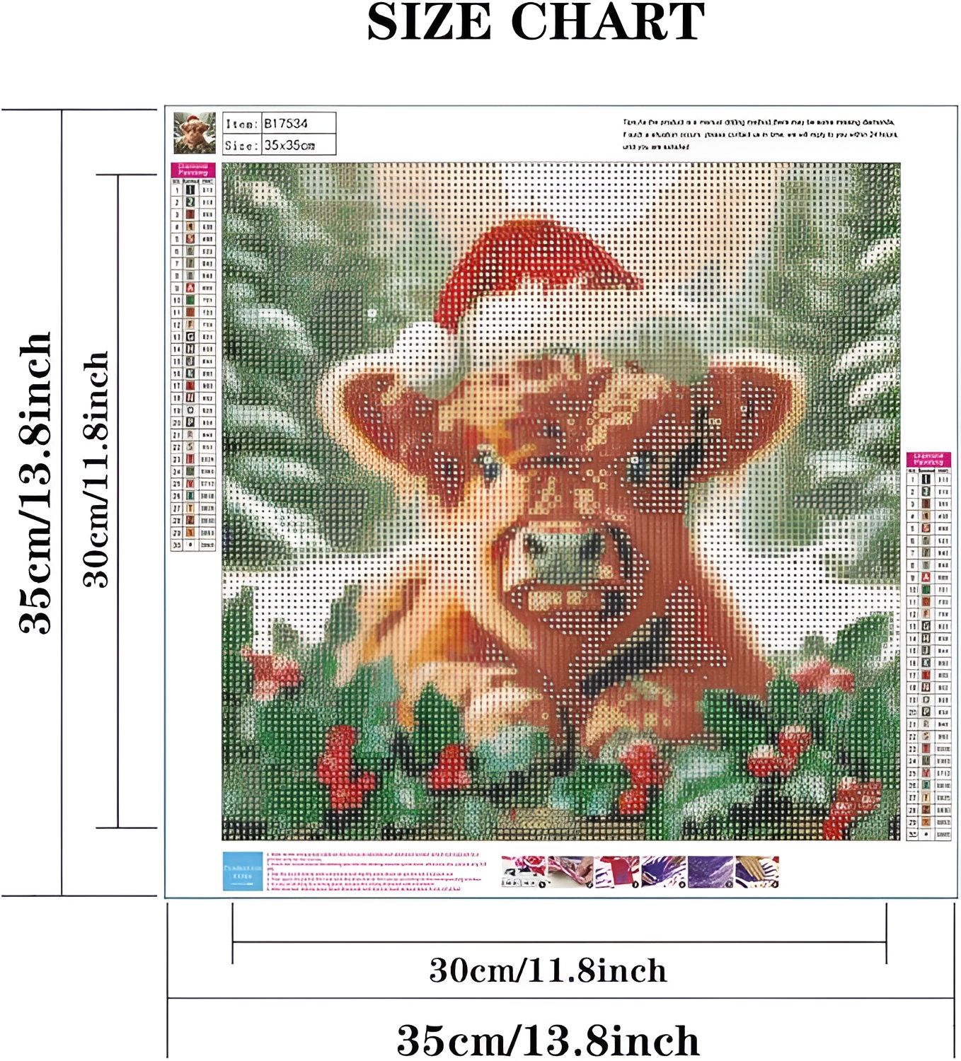 - All-Inclusive Kit: The Christmas Highland Cow Themed Diamond Art Painting Kit includes everything you need to complete the project. You’ll receive a 12x12-inch canvas, a point diamond pen, a tray, wax, and 10 ziplock bags for storing diamonds. Plus, the kit includes an extra 30% rhinestones to ensure you have enough to finish the project without running out.