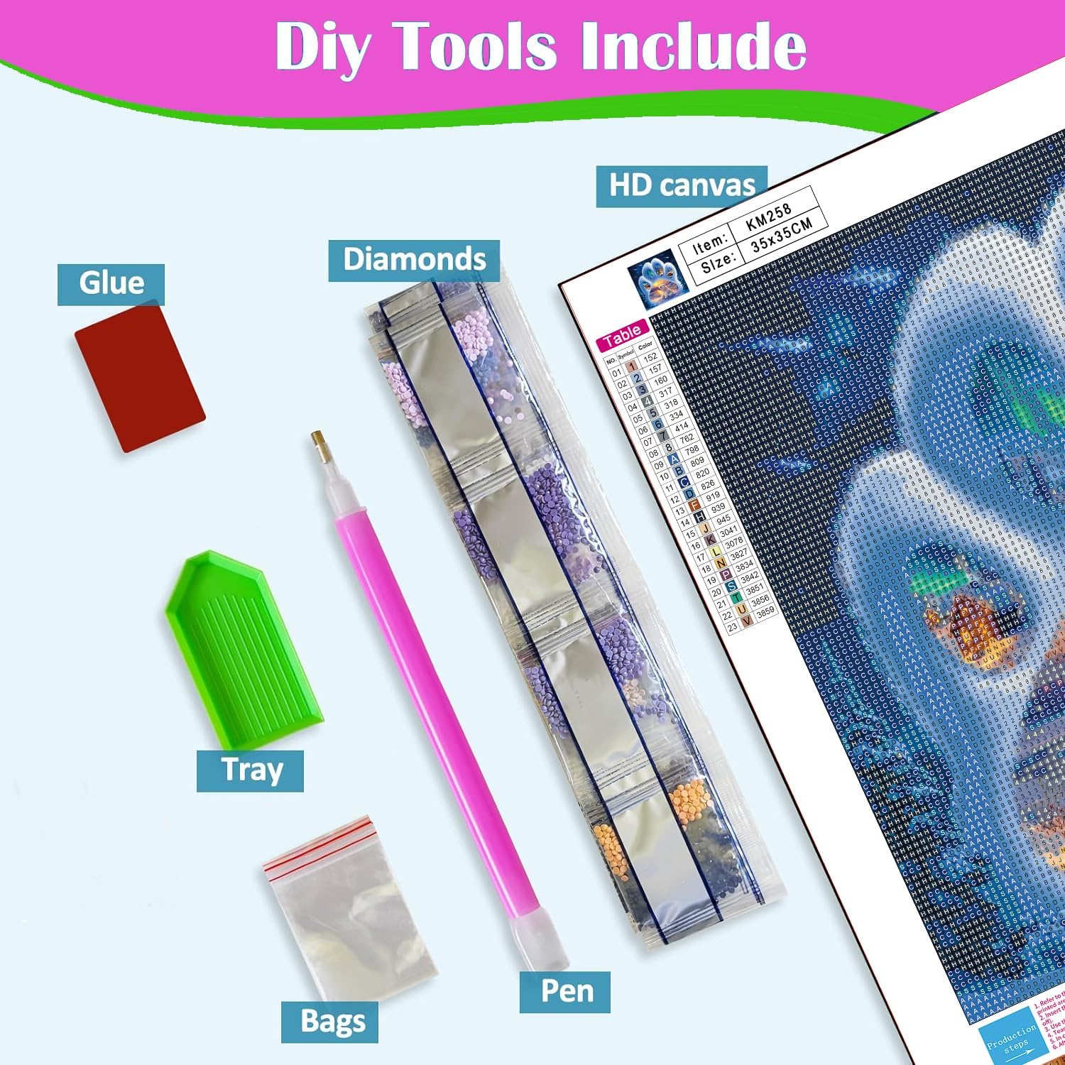 - HD Canvas: The kit includes a high-definition canvas that is waterproof, without wrinkle, and has a sticky background. The canvas ensures that the diamonds stay securely in place as you work, making the crafting experience smooth and easy.