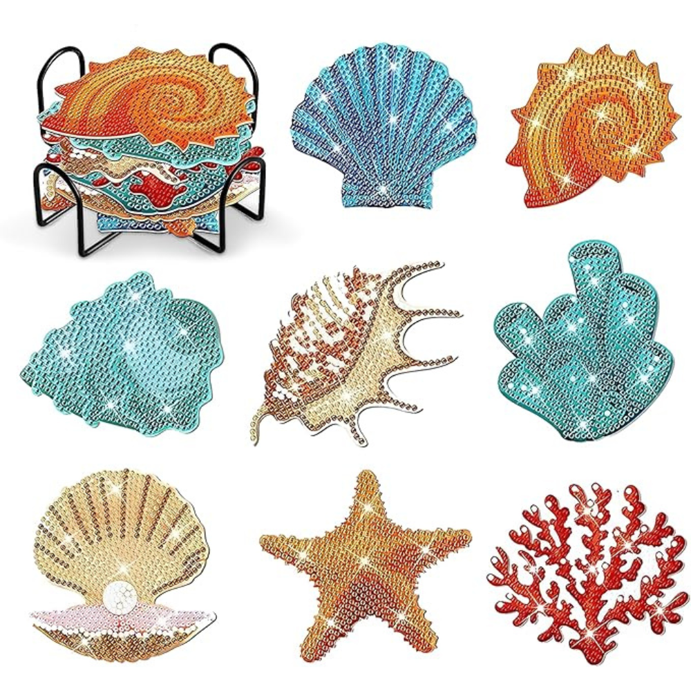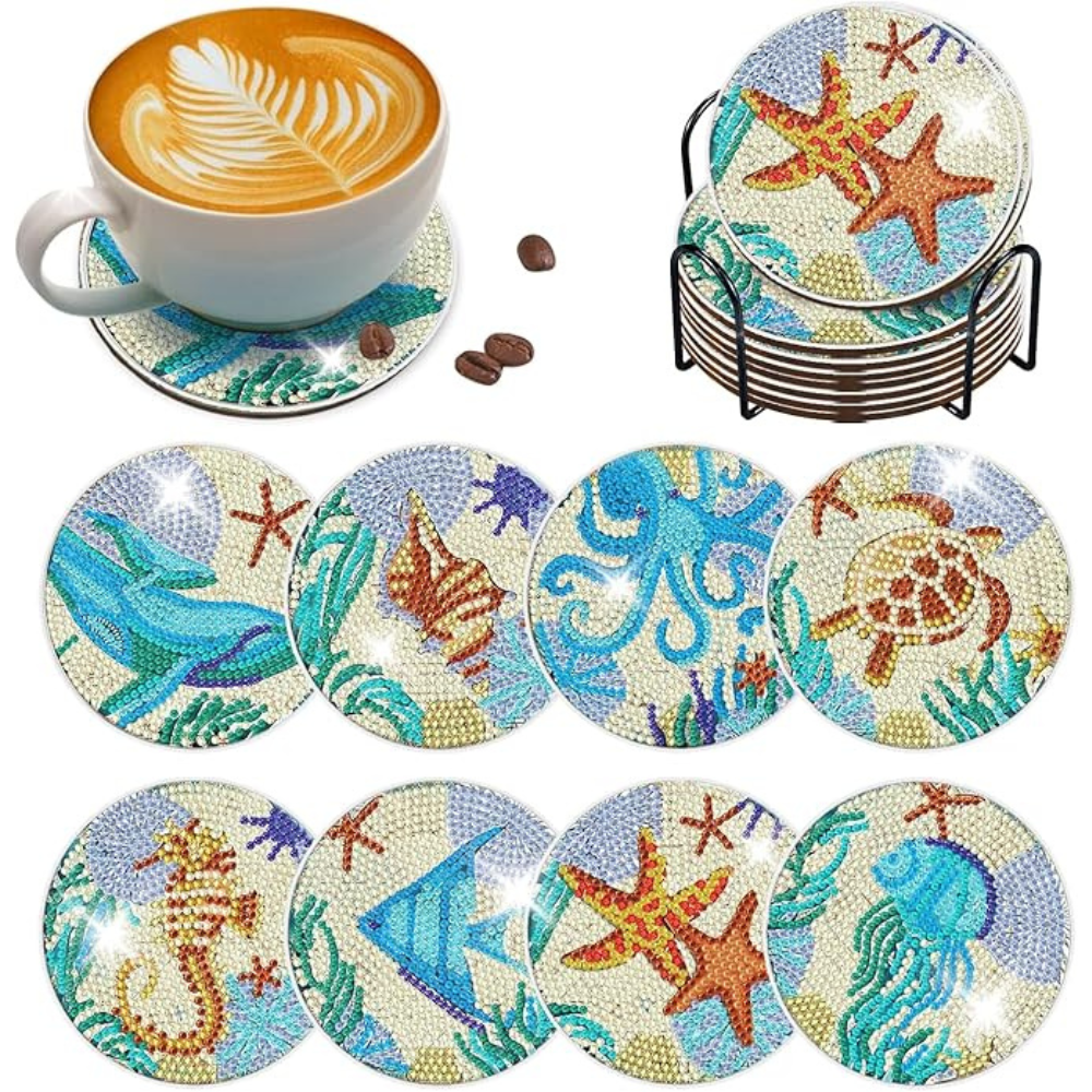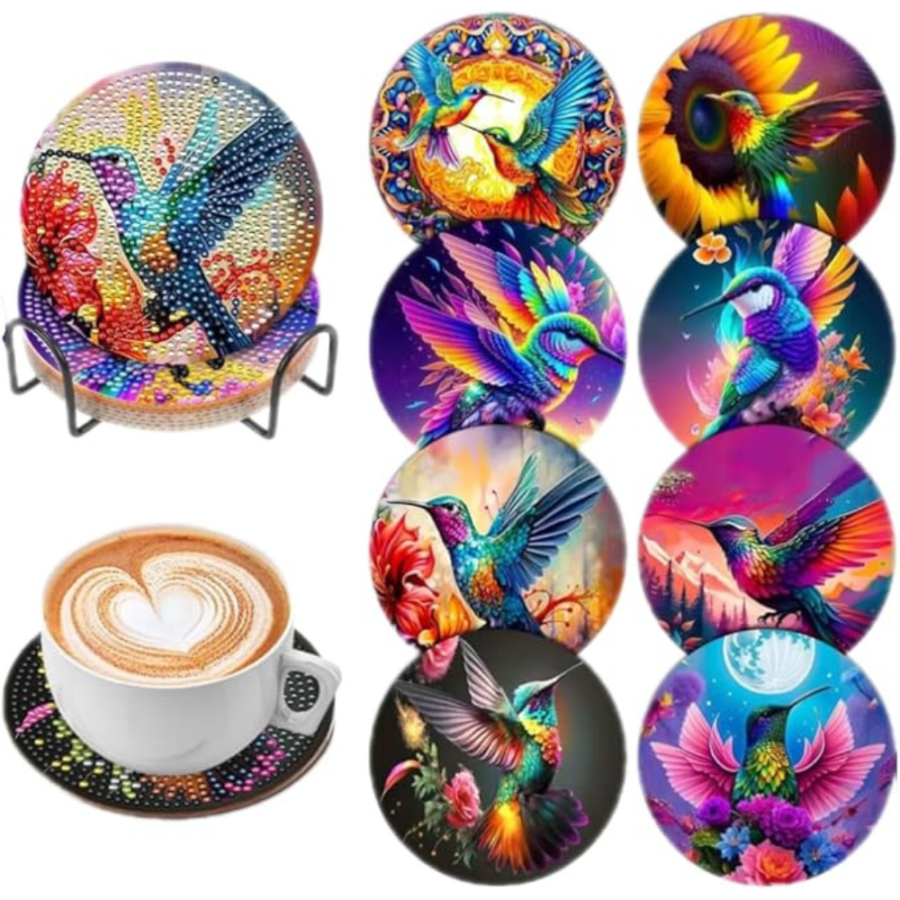 The 8 Pieces Diamond Art Coaster Set includes all the materials you need to create beautiful and functional coasters. Each kit contains: