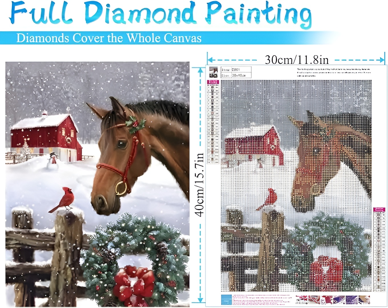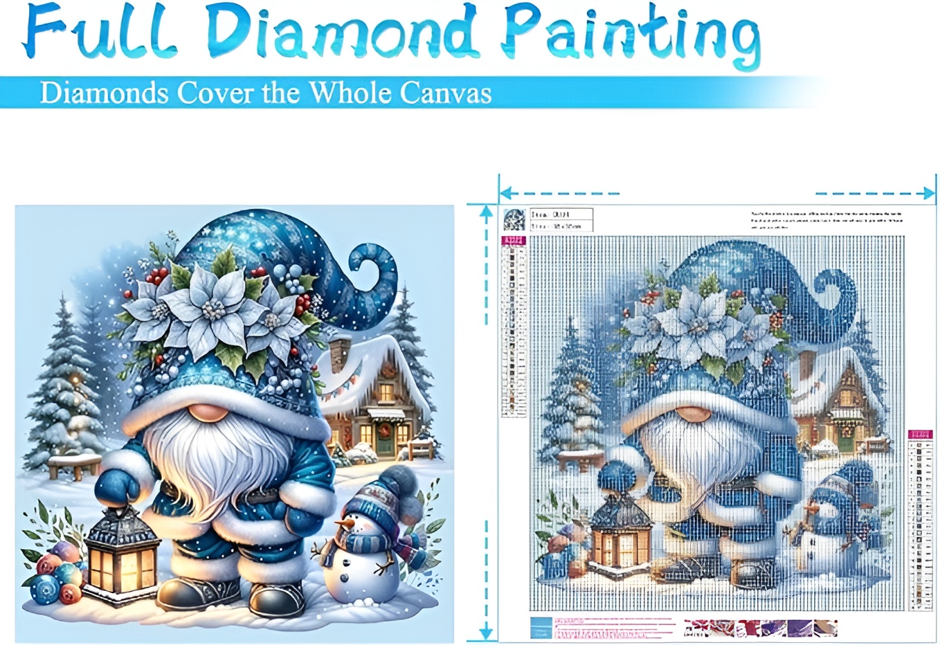 Canvas Dimensions Of DIY 5D Diamond Art Kit for Adults with Gnome and Snowman Holiday Theme