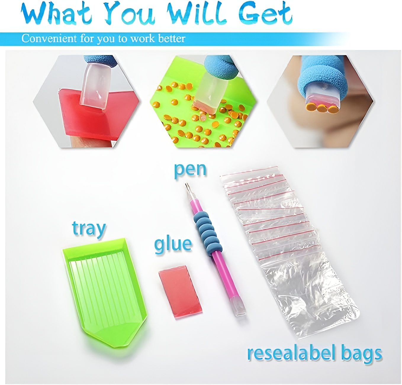 - Store rhinestones in bags provided to avoid loss