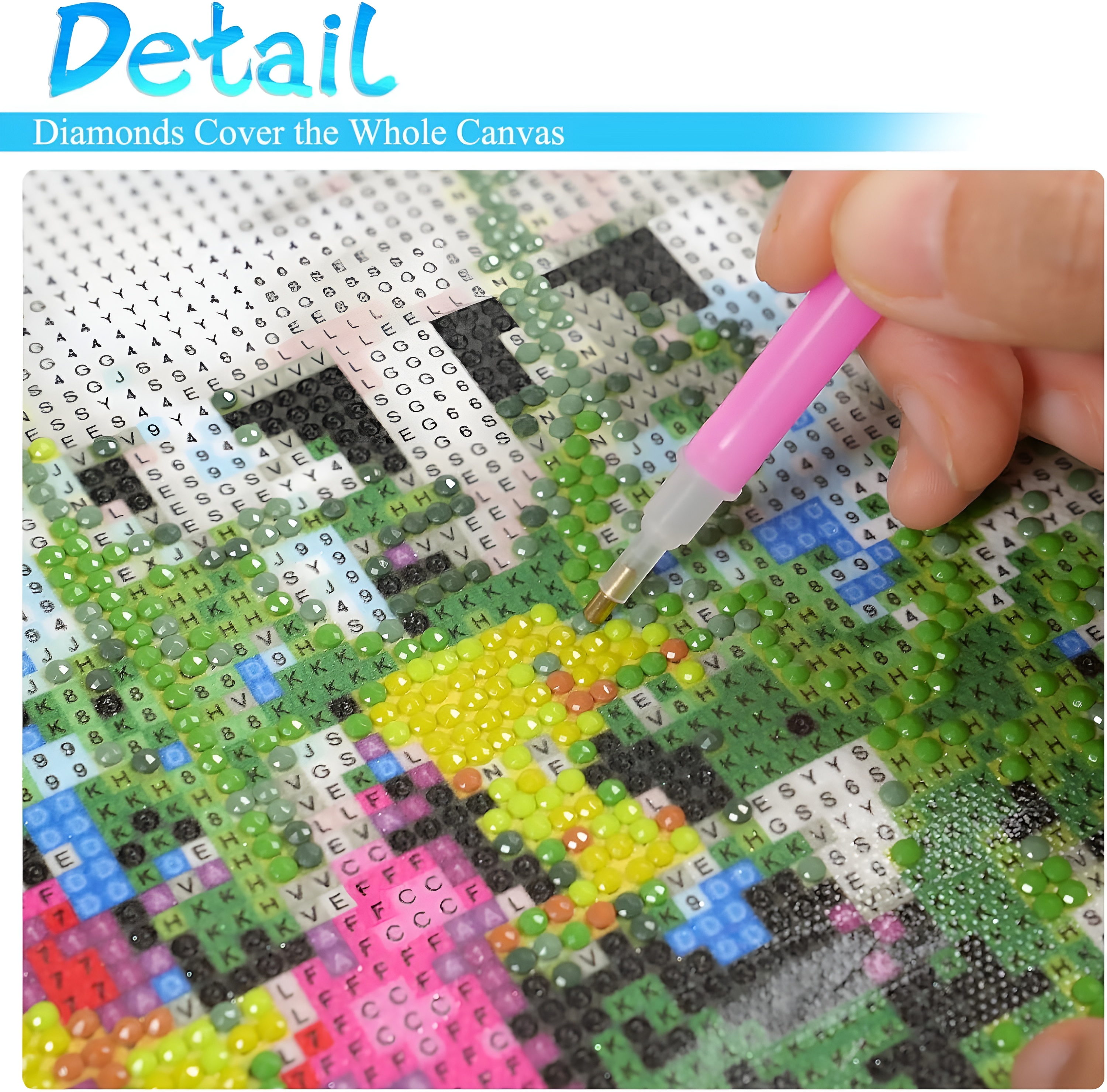 This is a Beginner Diamond Project, for those learning this type of artwork. There are no complex assembly steps. The visual code chart maps directly to the colored rhinestones, making it approachable even for those to the hobby.