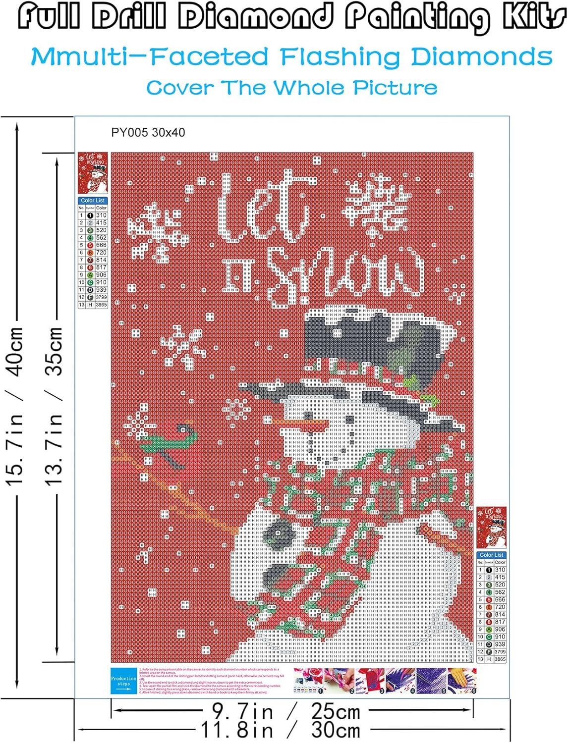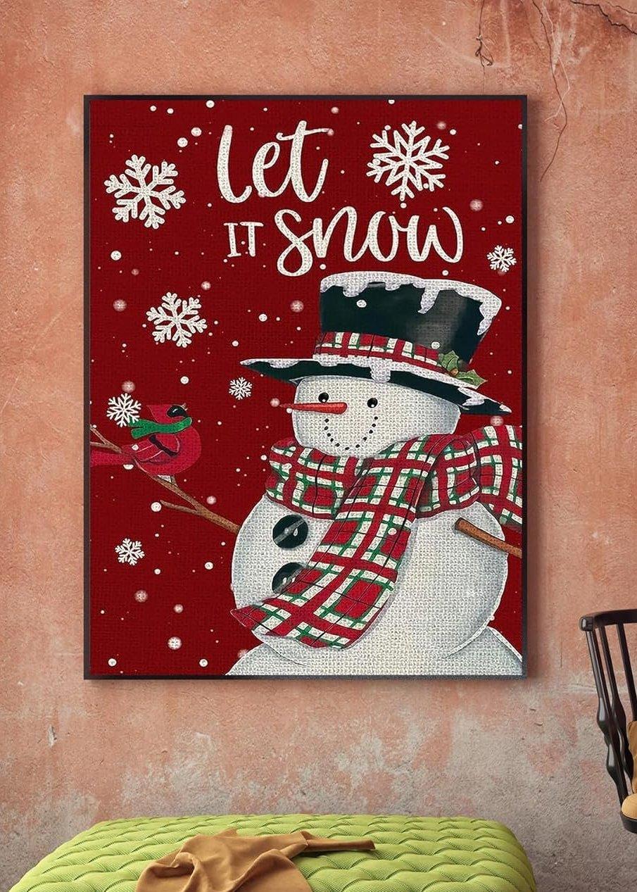 The Let It Snow Snowman Art Print Paint By Diamond Kit showcases a cheerful snowman in a plaid scarf and top hat, accompanied by a cardinal and snowflakes, set against a festive red background with the phrase "Let It Snow." This 12x16 inch DIY kit includes a pre-printed canvas, colorful round rhinestones, and all necessary tools for crafting a sparkling holiday masterpiece. With clear patterns and straightforward instructions, it’s suitable for crafters of all skill levels. The vibrant rhinestones bring the snowman and holiday details to life, making it an ideal seasonal decoration or a thoughtful handmade gift.