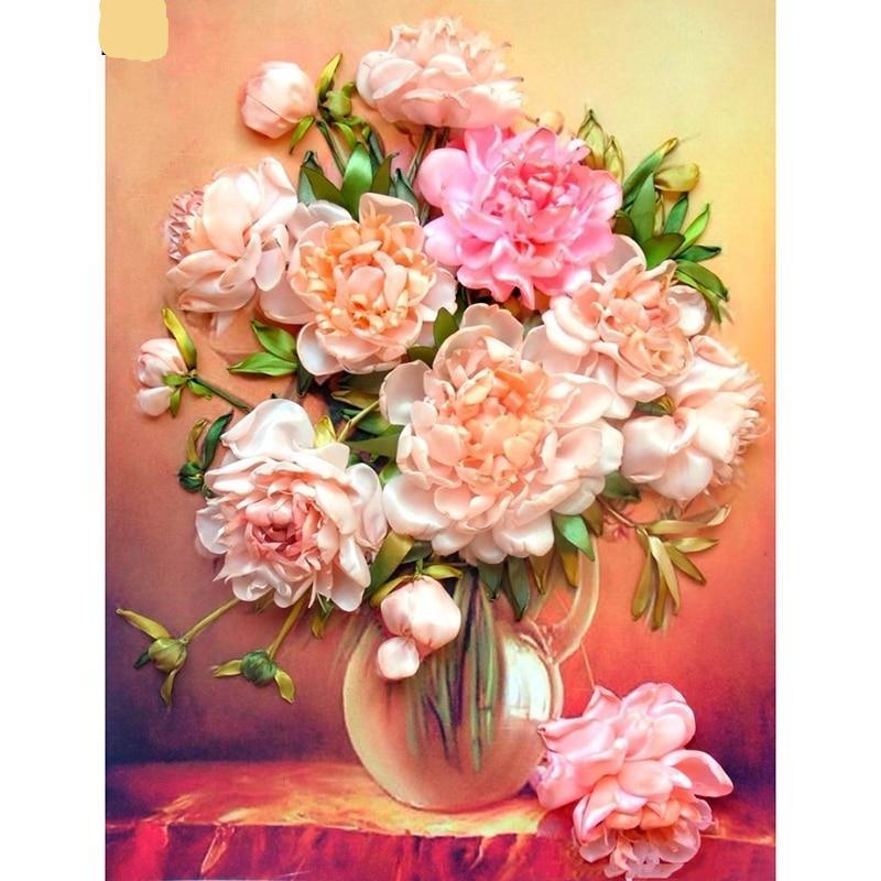 Pink Flowers Decor 5D DIY Paint By Diamond Kit