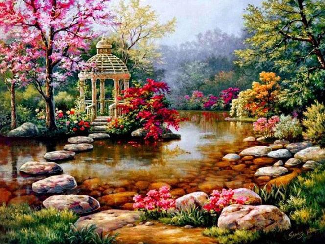 Scenic Gazebo mosaic 5D DIY Paint By Diamond Kit