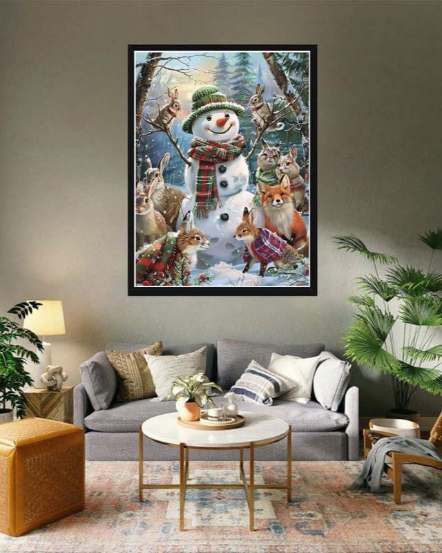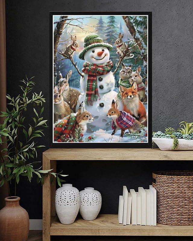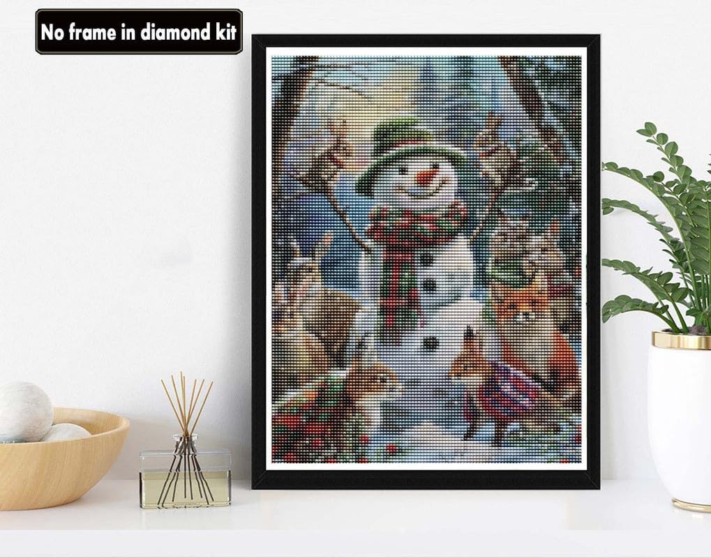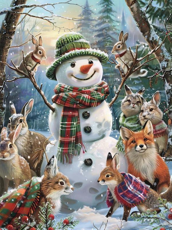 The Snowman With Forest Friends Print Paint By Diamond Kit captures a heartwarming winter scene featuring a cheerful snowman surrounded by woodland animals in a snowy forest. This DIY kit includes a pre-printed canvas, sparkling full-round drill diamonds, and applicator tools, offering an enjoyable and creative activity for crafters of all skill levels. The vibrant rhinestones add depth and color, bringing the enchanting design to life.
