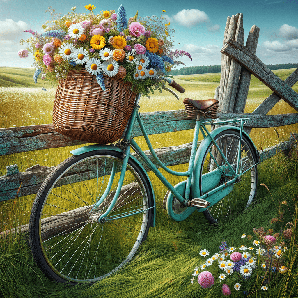 Vintage Bicycle with Flower Basket 5D DIY Paint By Diamond Kit